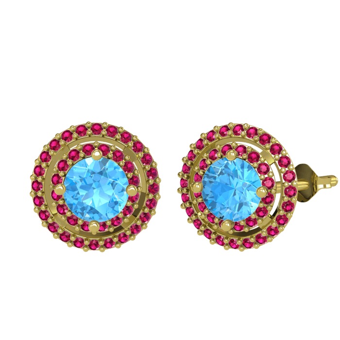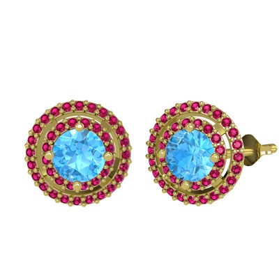 Akuamarin ve rodolit garnet 8 ayar altın küpe