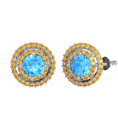 Akuamarin ve sitrin 14 ayar beyaz altın küpe