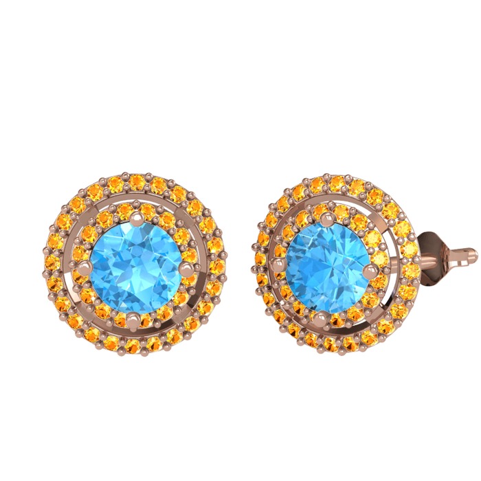 Akuamarin ve sitrin 925 ayar rose altın kaplama gümüş küpe