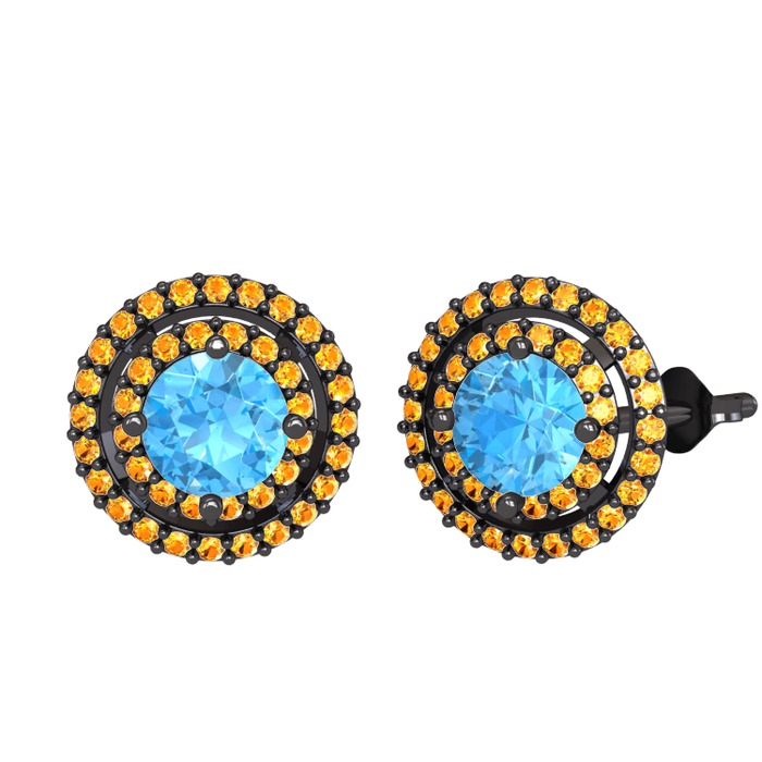 Akuamarin ve sitrin 925 ayar siyah rodyum kaplama gümüş küpe