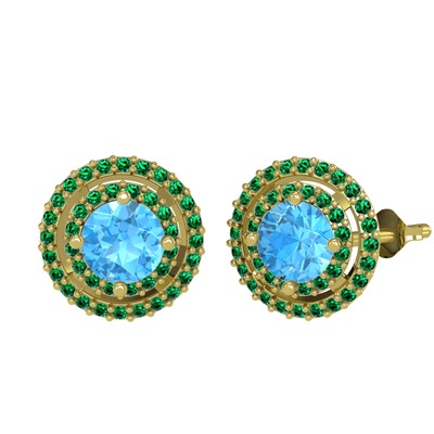 Akuamarin ve yeşil kuvars 14 ayar altın küpe