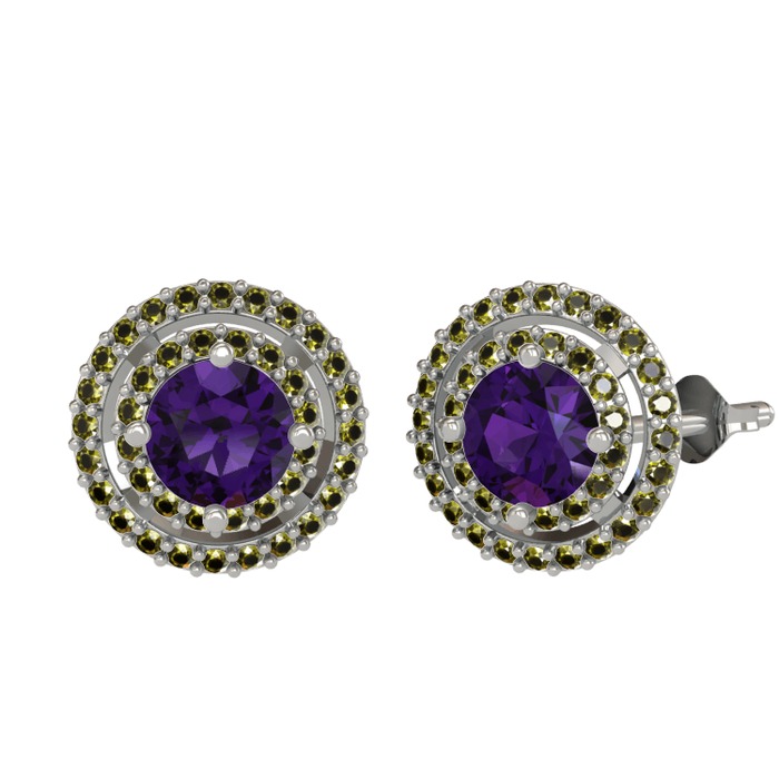 Ametist ve peridot 925 ayar gümüş küpe