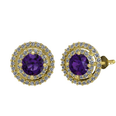 Ametist ve pırlanta 8 ayar altın küpe (0.702 karat)