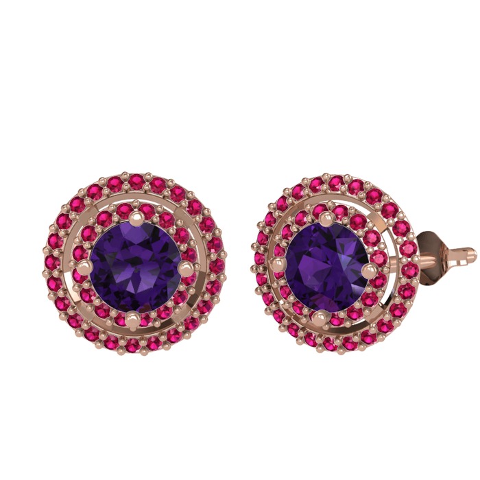 Ametist ve rodolit garnet 18 ayar rose altın küpe