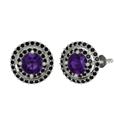 Ametist ve siyah zirkon 8 ayar beyaz altın küpe