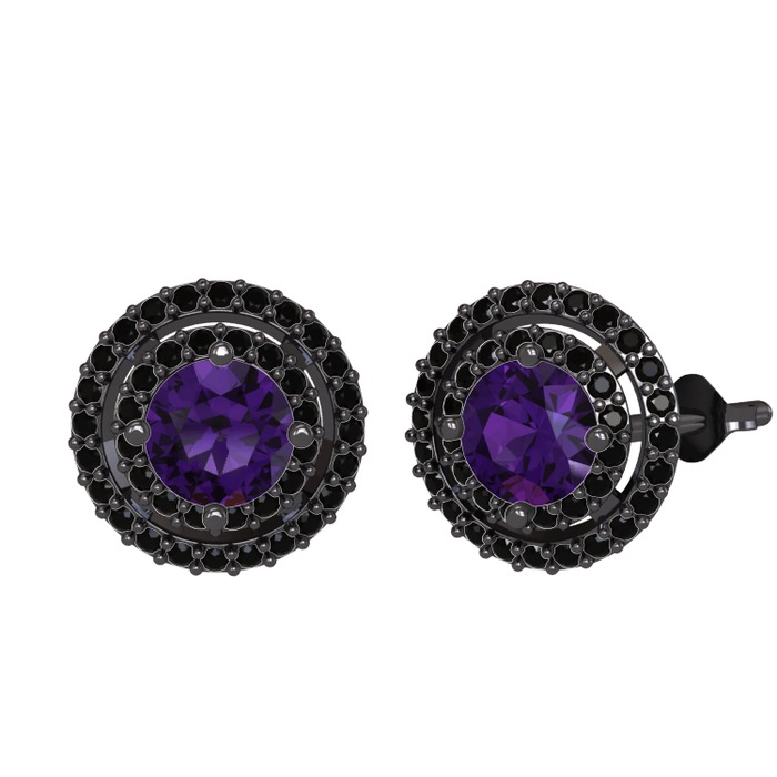 Ametist ve siyah zirkon 925 ayar siyah rodyum kaplama gümüş küpe