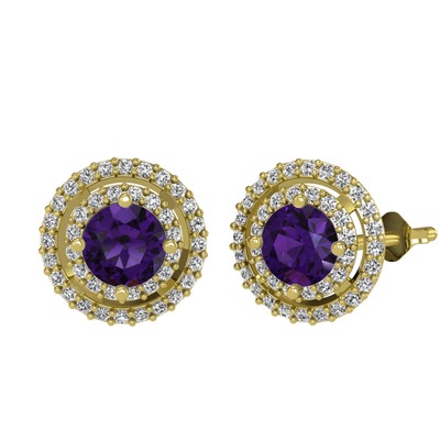 Ametist ve swarovski 925 ayar altın kaplama gümüş küpe