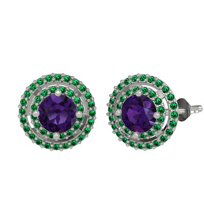 Ametist ve yeşil kuvars 8 ayar beyaz altın küpe