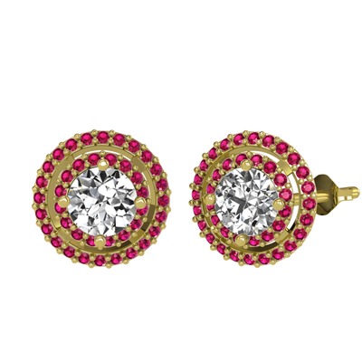 Beyaz zirkon ve rodolit garnet 8 ayar altın küpe