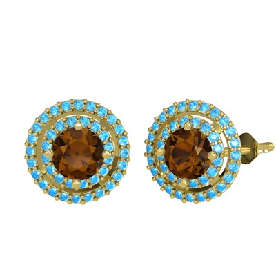 Dumanlı kuvars ve akuamarin 8 ayar altın küpe