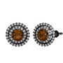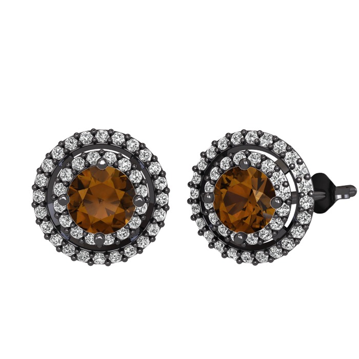 Dumanlı kuvars ve beyaz zirkon 925 ayar siyah rodyum kaplama gümüş küpe