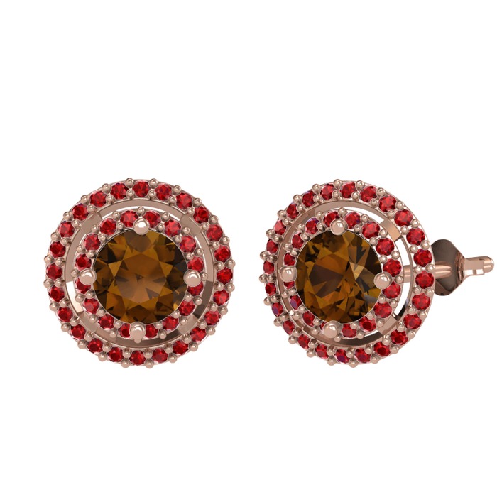 Dumanlı kuvars ve garnet 18 ayar rose altın küpe