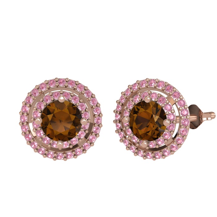 Dumanlı kuvars ve pembe kuvars 8 ayar rose altın küpe