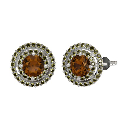 Dumanlı kuvars ve peridot 8 ayar beyaz altın küpe