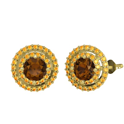 Dumanlı kuvars ve sitrin 14 ayar altın küpe