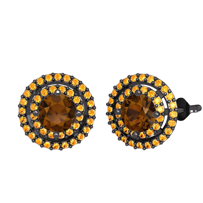 Dumanlı kuvars ve sitrin 925 ayar siyah rodyum kaplama gümüş küpe