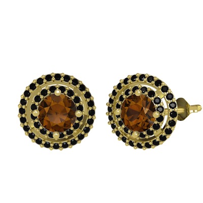 Dumanlı kuvars ve siyah zirkon 925 ayar altın kaplama gümüş küpe