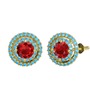Garnet ve akuamarin 8 ayar altın küpe