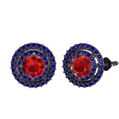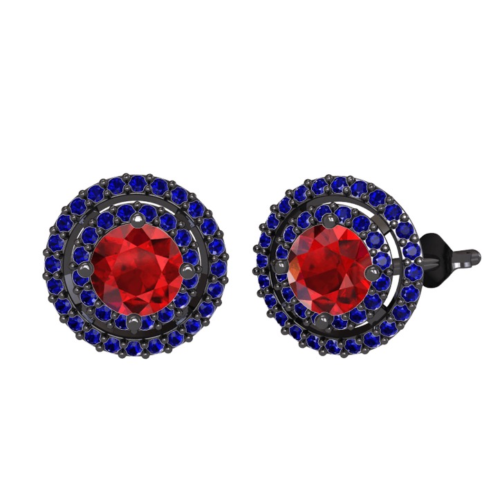 Garnet ve lab safir 925 ayar siyah rodyum kaplama gümüş küpe