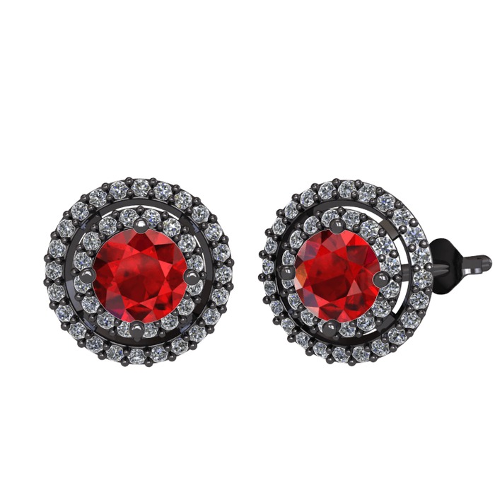 Garnet ve pırlanta 925 ayar siyah rodyum kaplama gümüş küpe (0.702 karat)
