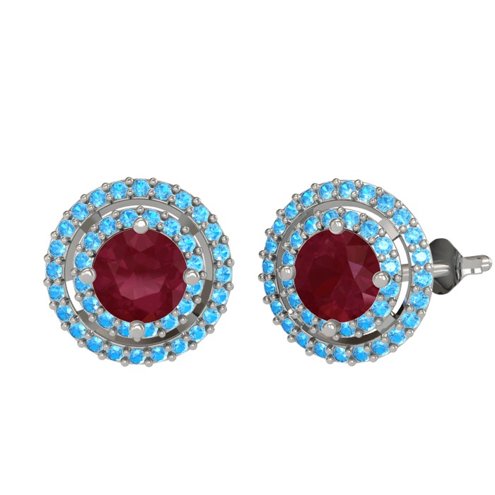 Kök yakut ve akuamarin 14 ayar beyaz altın küpe