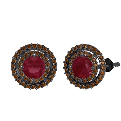 Kök yakut ve dumanlı kuvars 925 ayar siyah rodyum kaplama gümüş küpe