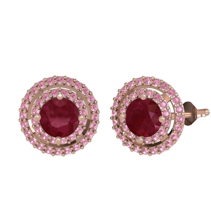 Kök yakut ve pembe kuvars 925 ayar rose altın kaplama gümüş küpe