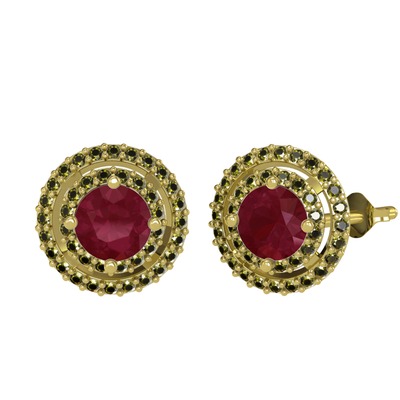 Kök yakut ve peridot 18 ayar altın küpe