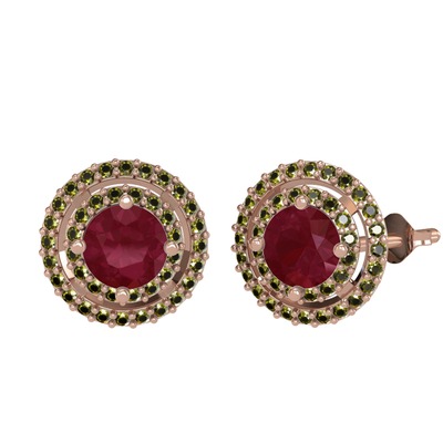 Kök yakut ve peridot 18 ayar rose altın küpe
