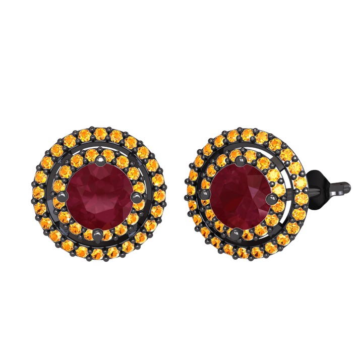 Kök yakut ve sitrin 925 ayar siyah rodyum kaplama gümüş küpe