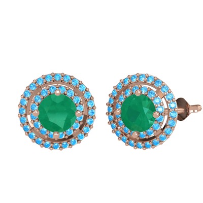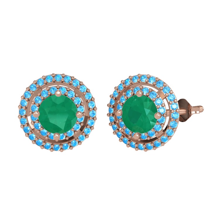 Kök zümrüt ve akuamarin 925 ayar rose altın kaplama gümüş küpe