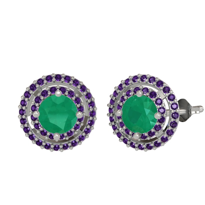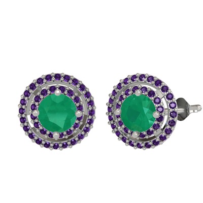 Kök zümrüt ve ametist 925 ayar gümüş küpe