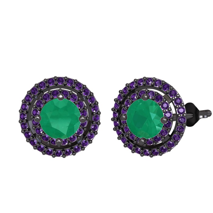 Kök zümrüt ve ametist 925 ayar siyah rodyum kaplama gümüş küpe