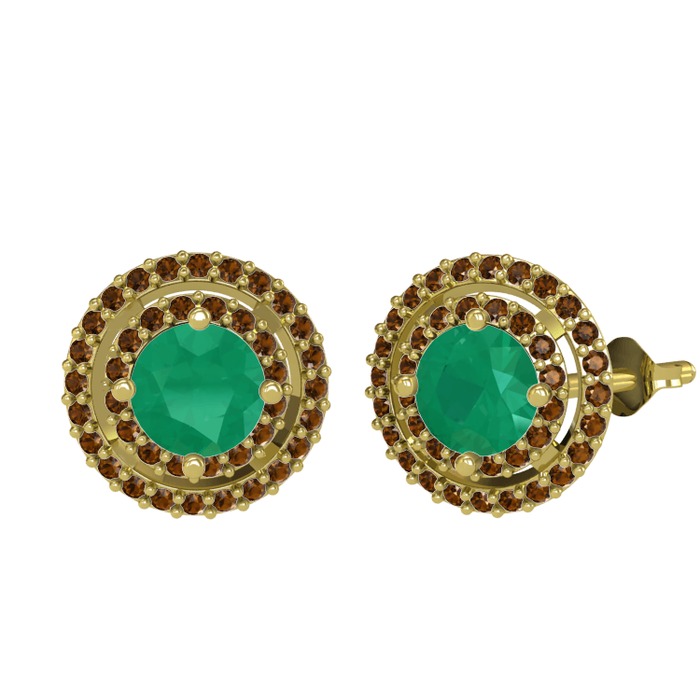 Kök zümrüt ve dumanlı kuvars 925 ayar altın kaplama gümüş küpe