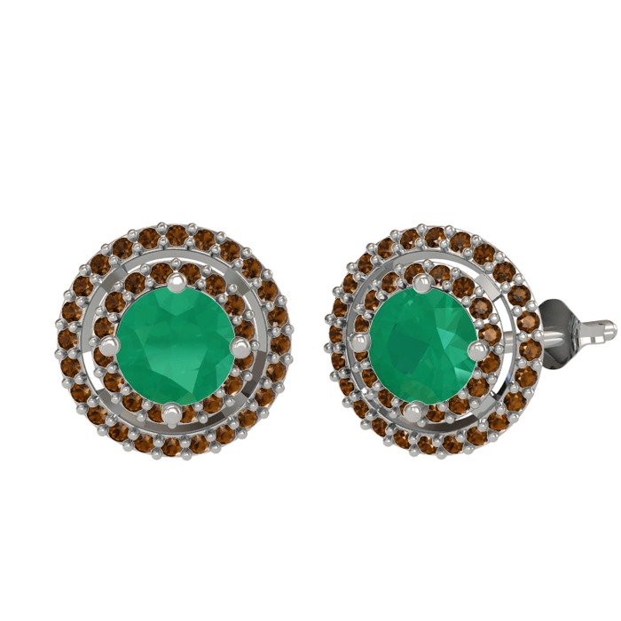 Kök zümrüt ve dumanlı kuvars 925 ayar gümüş küpe