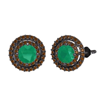 Kök zümrüt ve dumanlı kuvars 925 ayar siyah rodyum kaplama gümüş küpe