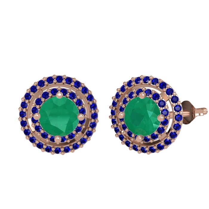 Kök zümrüt ve lab safir 18 ayar rose altın küpe