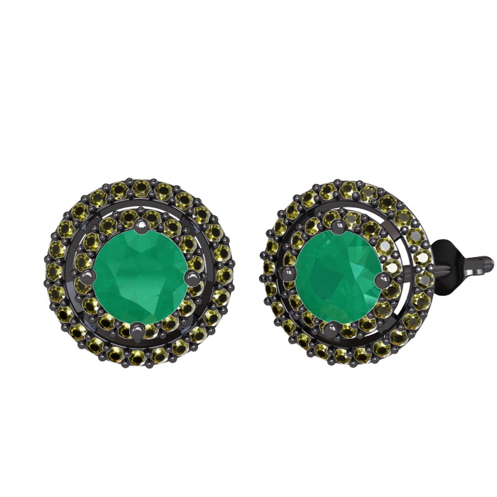 Kök zümrüt ve peridot 925 ayar siyah rodyum kaplama gümüş küpe