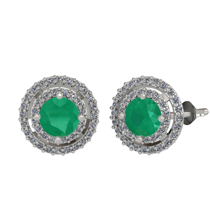 Kök zümrüt ve pırlanta 18 ayar beyaz altın küpe (0.702 karat)