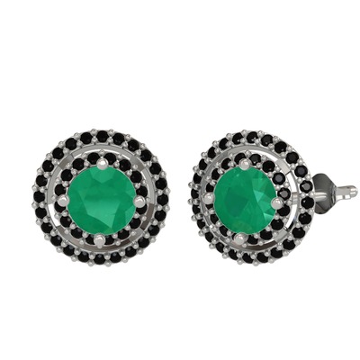 Kök zümrüt ve siyah zirkon 18 ayar beyaz altın küpe