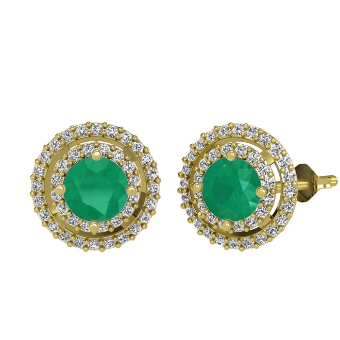 Kök zümrüt ve swarovski 18 ayar altın küpe