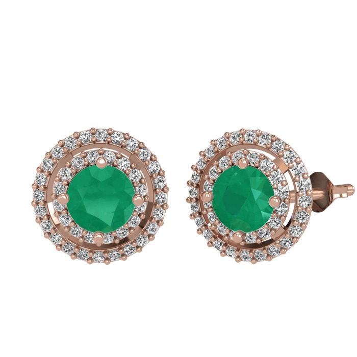 Kök zümrüt ve swarovski 18 ayar rose altın küpe