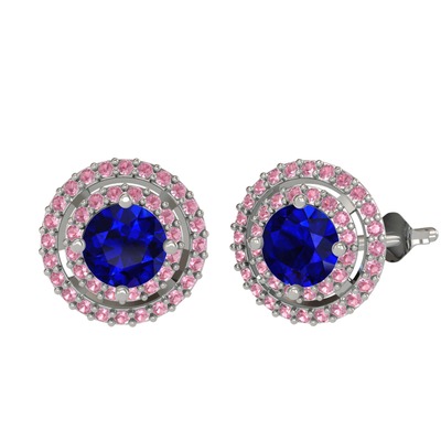 Lab safir ve pembe kuvars 18 ayar beyaz altın küpe