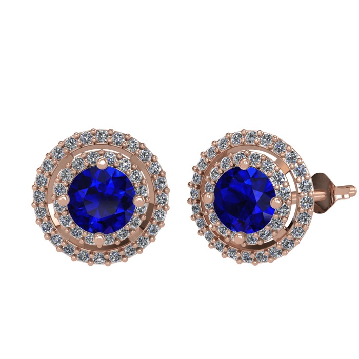 Lab safir ve pırlanta 8 ayar rose altın küpe (0.702 karat)