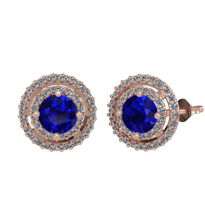 Lab safir ve pırlanta 925 ayar rose altın kaplama gümüş küpe (0.702 karat)