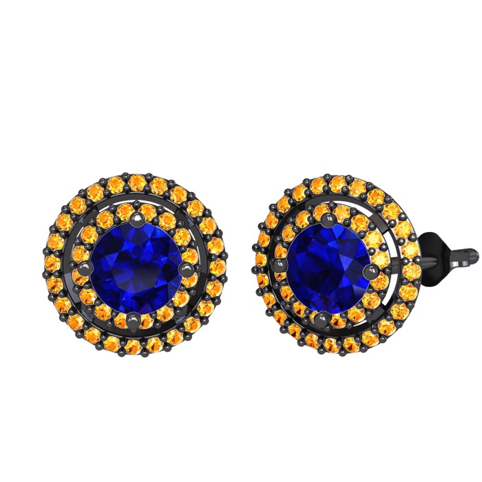 Lab safir ve sitrin 925 ayar siyah rodyum kaplama gümüş küpe