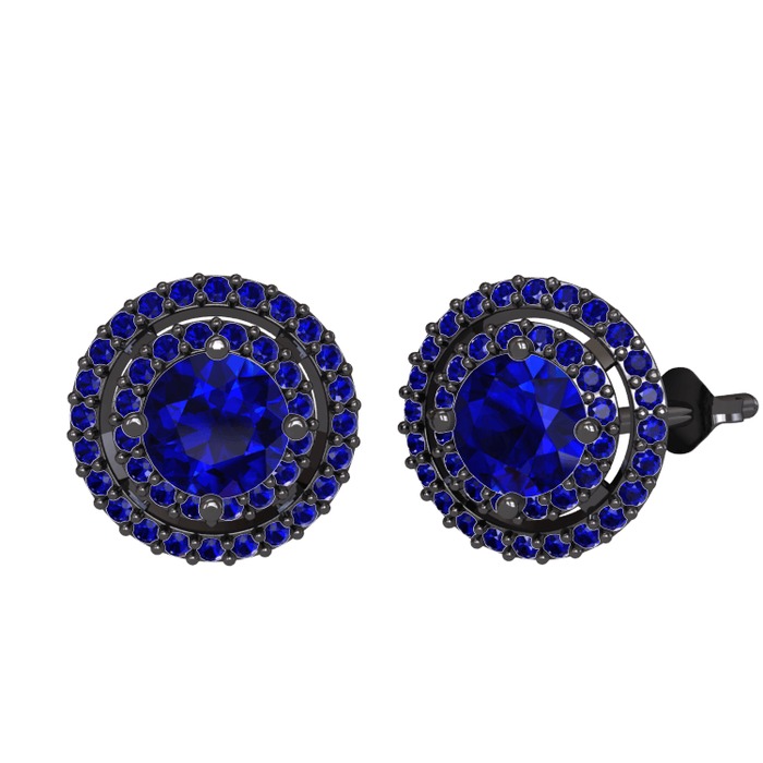 Lab safir 925 ayar siyah rodyum kaplama gümüş küpe