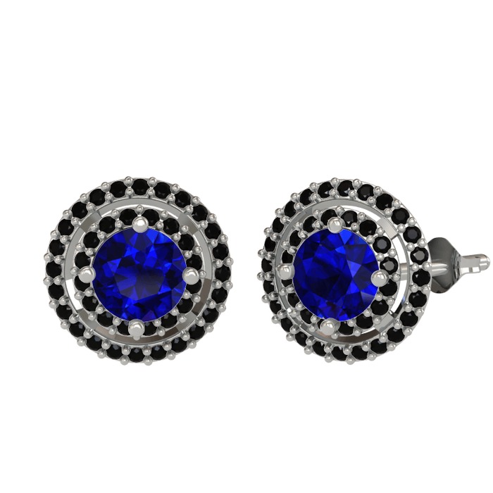 Lab safir ve siyah zirkon 18 ayar beyaz altın küpe