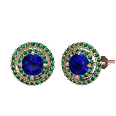 Lab safir ve yeşil kuvars 14 ayar rose altın küpe