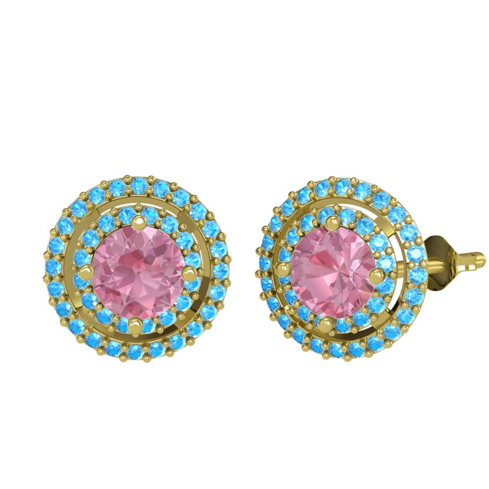 Pembe kuvars ve akuamarin 8 ayar altın küpe